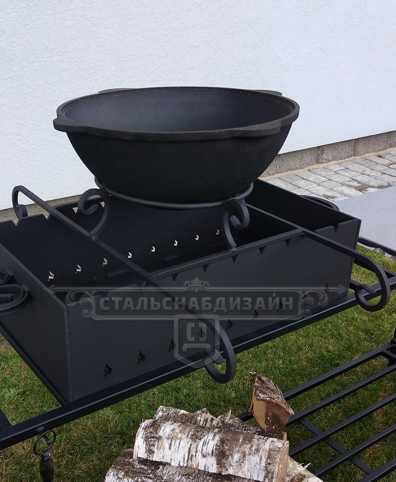 Диаметр 300 мм, длина 740 мм, ширина 350 мм, высота 90 мм, под казан 8-12 литров.